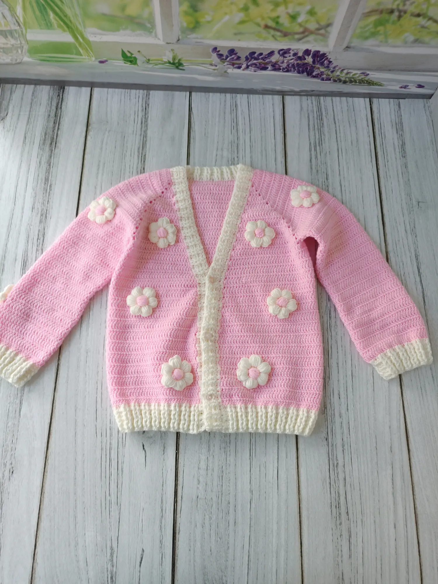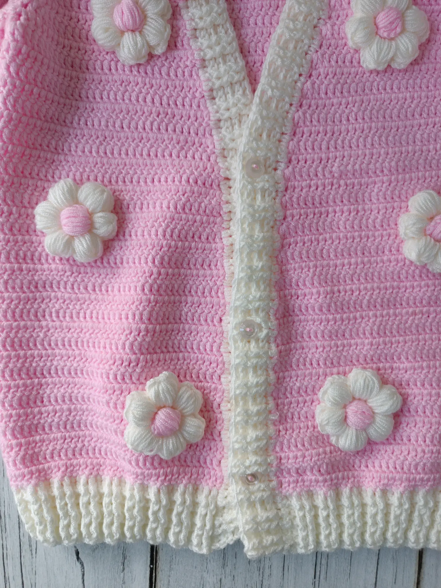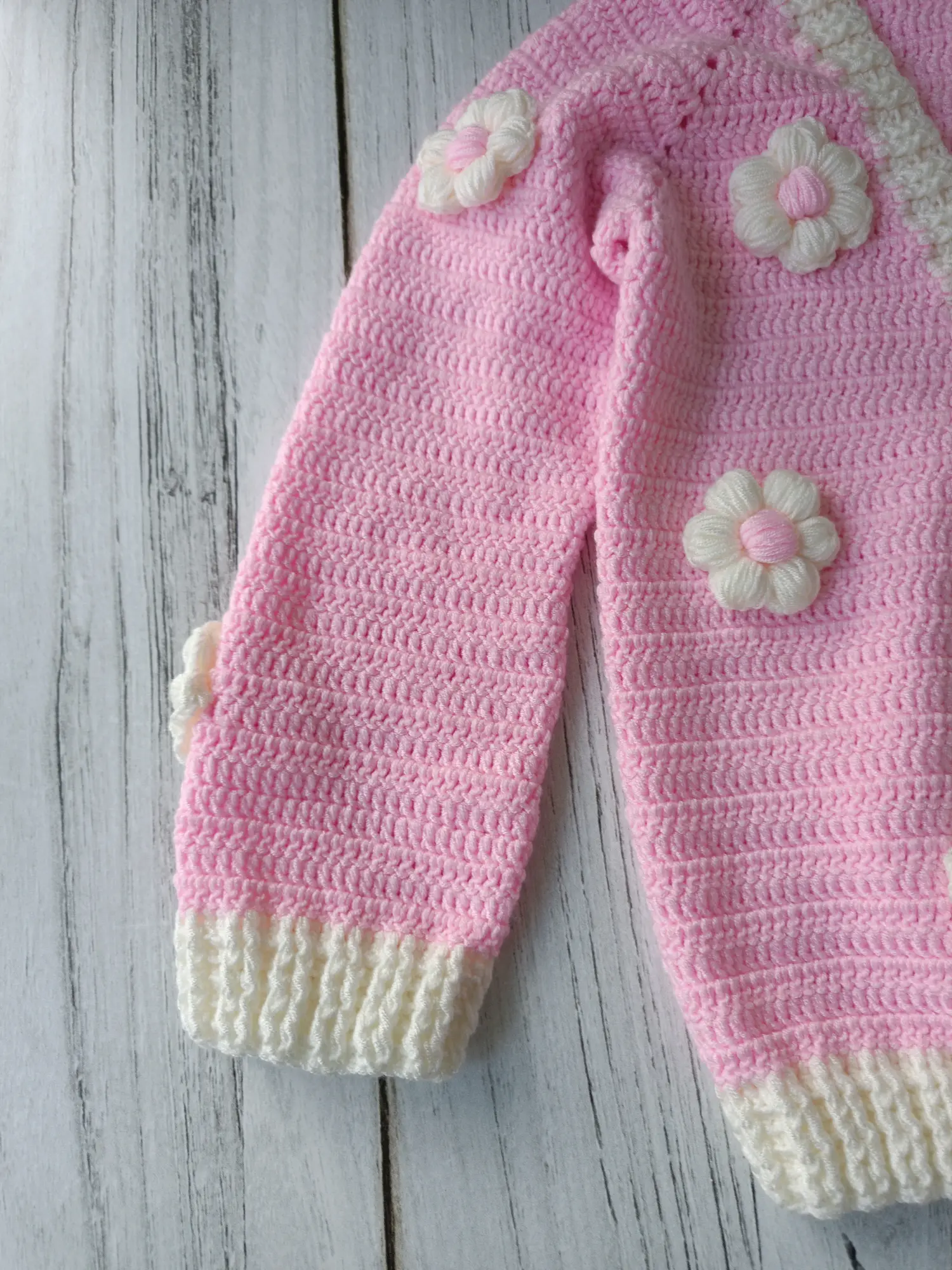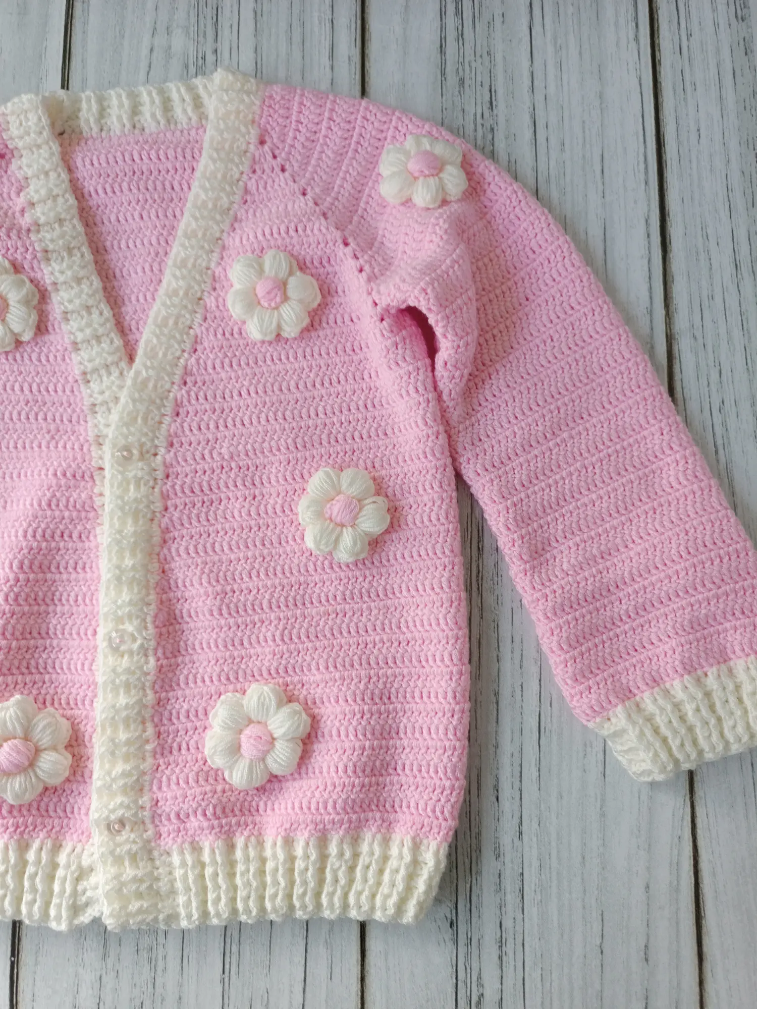 Hand-knitted floral baby cardigan. Soft textured, stylish and comfortable design. Ideal for everyday wear and special occasions, a wonderful gift option. 🌸💕